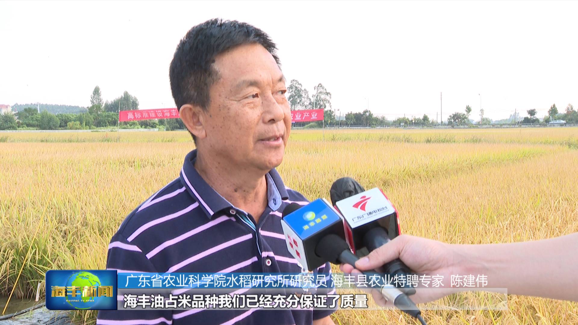 農戶:海豐油占米的品種是非常關鍵,前幾年我們也是在尋找優質品種來種植,一直都沒有技術進行繁殖,種植以後品種就會變,這幾年,省農科院陳建偉教授在我們這裏設立育種基地,我們就看到了水稻種植的未來。
